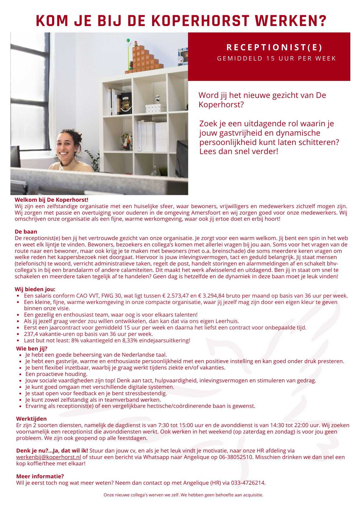 • Receptionist (15 uur per week)